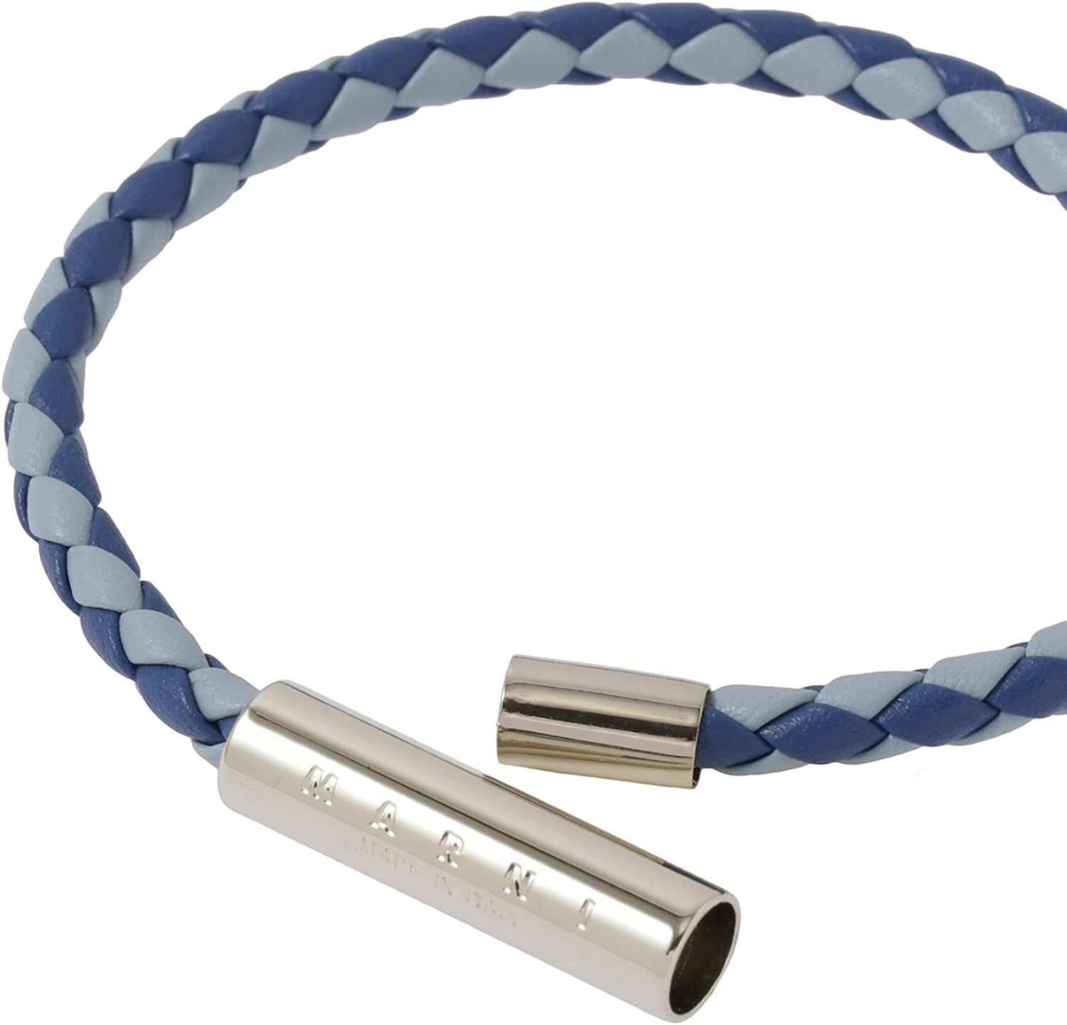 MARNI is a luxury fashion brand born in Italy in 1994. Braided leather Enggrave Logo bracelet in an eye-catching colorway. The opening and closing part is magnetic.