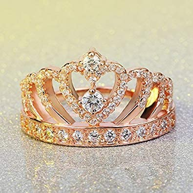 Presentski Women's Crown Ring Princess Queen 18K Gold Plated Crown Ring Small CZ Gift Girl Promise Ring
